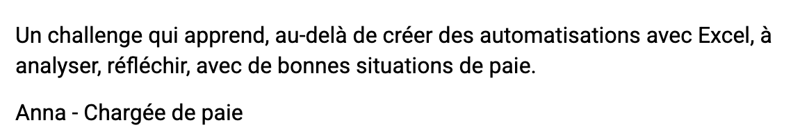 C'est un challenge de perfectionnement sur deux compétences clés : contrôle de la paie et Excel appliqué à la paie.